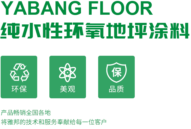 江蘇雅邦環保科技有限公司是水性環氧地坪全系列成品涂料的研發、生產、銷售和施工服務于一體的企業。        公司產品是以第三代非離子原材料和先進技術生產的新型全水性環氧地坪涂料。